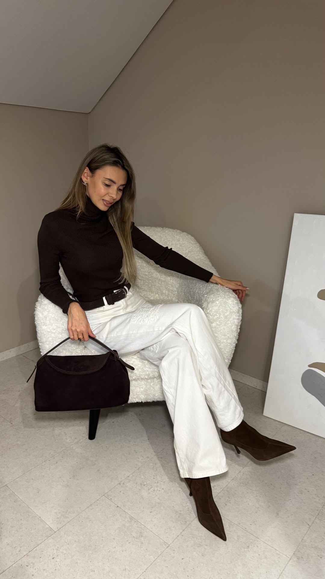 albina.style Вы тоже подсели на шоколадный цвет? Обожаю 🤎 Сумка, ремень из замши @levertige.ru Водолазка @kaza_dere3a Джинсы @specifica_store Обувь @ekonikastyle