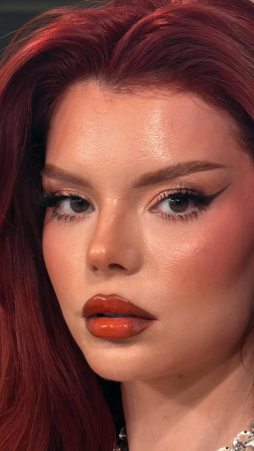 anastasile Cream eyeshadows @makeupbymario Eyeshadows and glitters @patricktabeauty Skin prep @pixibeauty rose essence oil Foundation @missha.official purple bb 17 Cream contour and blush @makeupforever Powder @hudabeauty Powder blush @valentino.beauty Highlighter @diorbeauty Brows @nyxcosmetics Mascara @tartecosmetics tubing Lip pencil @morphebrushes sweet tea Lipstick @maccosmetics fleshpot Setting spray @tirtir_global Body glow @soldejaneiro
