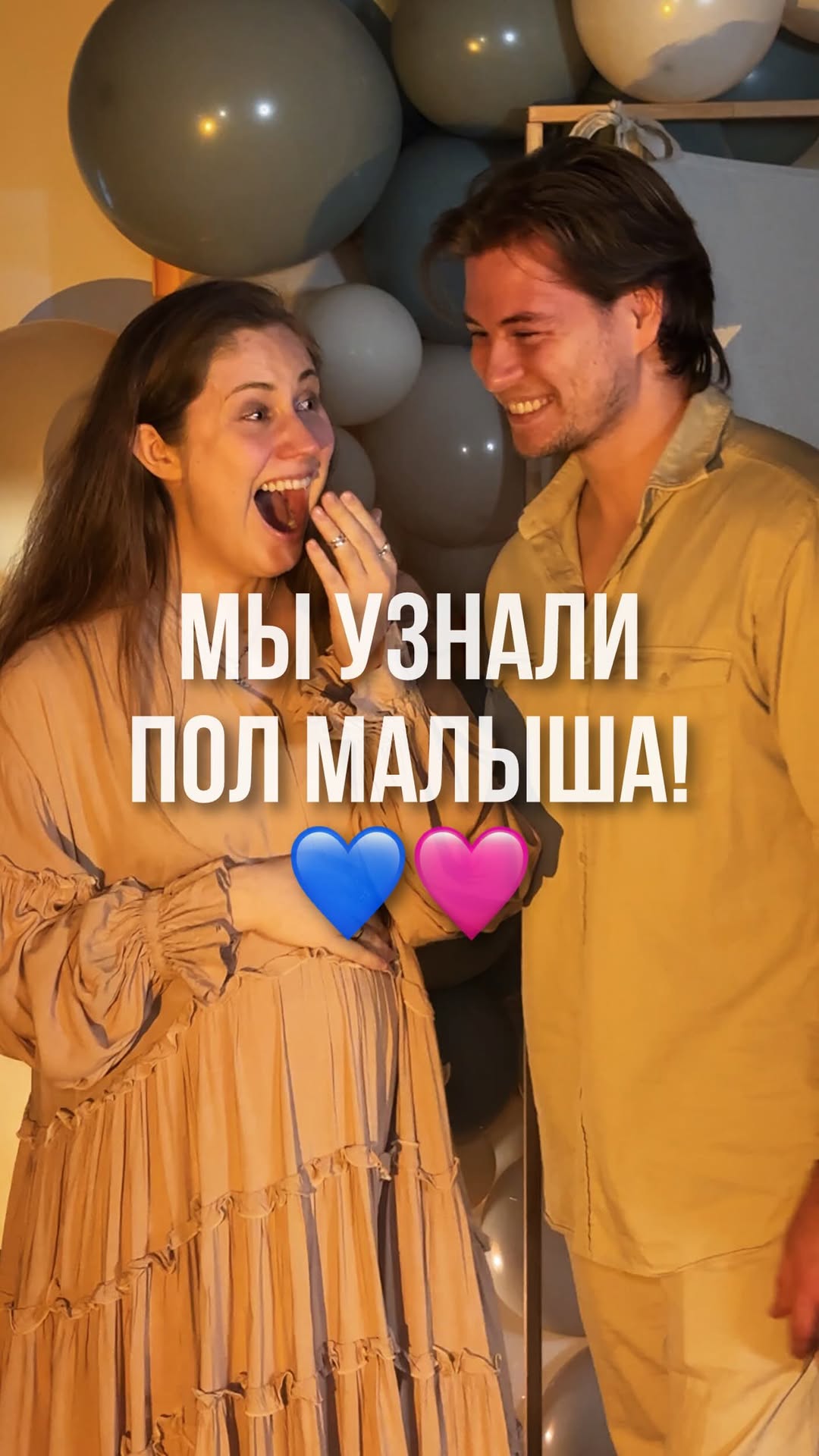 andryalice_ Мы узнавали пол малыша два раза чтобы было точнее. Первый раз Алиса сделала узи, где ей уже сказали, что явно видно пол и нет никаких сомнений. Но мы решили перепроверить с помощью более точного способа – по крови (точность превышает 99%) Бабушка Лена открывала конверт, который дали на УЗИ, а бабушка Таня развязывала шарик с бодиком (она не знала пол, шар с бодиком подготовили декораторы)