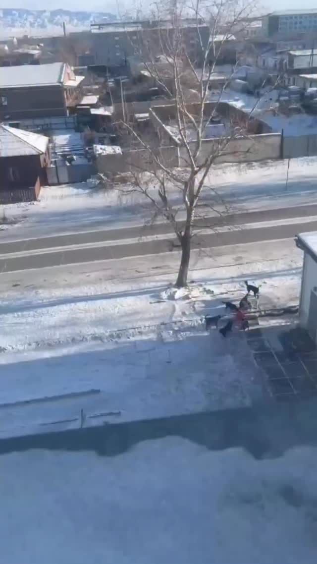 chp_kyzyl ⚡️В Кызыле на улице Горная, стая собак напала на малолетнюю девочку. На опубликованном видео видно, как собаки вцепились в куртку девочки и пытались покусать её лицо. Прохожий мужчина заметил происходящее и спас девочку, отогнав собак. Информации о состоянии здоровья девочки на данный момент нет.