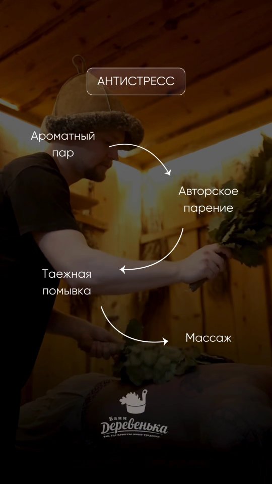 derevenka «Бани Деревенька» — первая общественная баня в Татарстане, где высокое качество сервиса сочетается с атмосферой «как дома». Давайте расскажем, как у нас все устроено Для гостей открыты два разряда: – Высший мужской – Высший женский В каждом: просторные общие парные, отдельные парные для индивидуальных ритуалов, прохладные кедровые купели, обливные устройства и уютный зал отдыха. Главное богатство «Бани Деревенька» — наши пармастера. Они знают тайны лёгкого, ароматного пара и передают своё мастерство из поколения в поколение. СПА: - массажи - авторские парения - традиционные помывки - пилинги, возвращающие силы и свежесть Ресторан Чтобы отдых был ещё полнее, загляните в наш ресторан авторской кухни: меню, постное меню Приходите за легким паром до мурашек, вкусной кухней и тем самым чувством заботы, которое мы помним с детства.