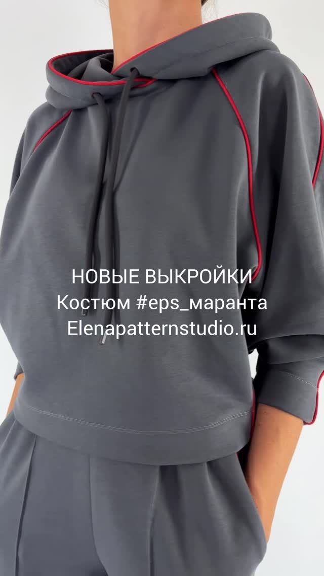 elena.patternstudio С удовольствием представляю вам выкройки нового костюма #eps_маранта ✨ Выкройки худи и брюк уже на сайте! Как вам результат?😍 О моделях: ✨Худи: Умеренного объема зауженного к низу силуэта. Рукава реглан, двухшовные. Капюшон умеренного объема, со швом. Капюшон втачен в горловину внахлест. По краю капюшона кулиска со шнуром. Длина худи выше уровня бедер. ✨Брюки: Умеренного объема прямого силуэта на притачном поясе с резинкой. Середина пояса находится на уровне естественной талии. Брюки с боковыми вставками. На передних половинках брюк карманы с отрезным бочком, застрочены стрелки и заложено по 2 складки. Особая деталь: швы костюма оформлены кантом. Это добавляет графичности и делает модель по-настоящему выразительной. Это тот самый случай, когда «просто» не значит «скучно». Всего пара дней — и ваш новый любимый комплект готов! С пошивом справится даже начинающий.👌 С удовольствием отвечу на все ваши вопросы! 😊 Сейчас на новинки действует акция, добро пожаловать: https://elenapatternstudio.ru/