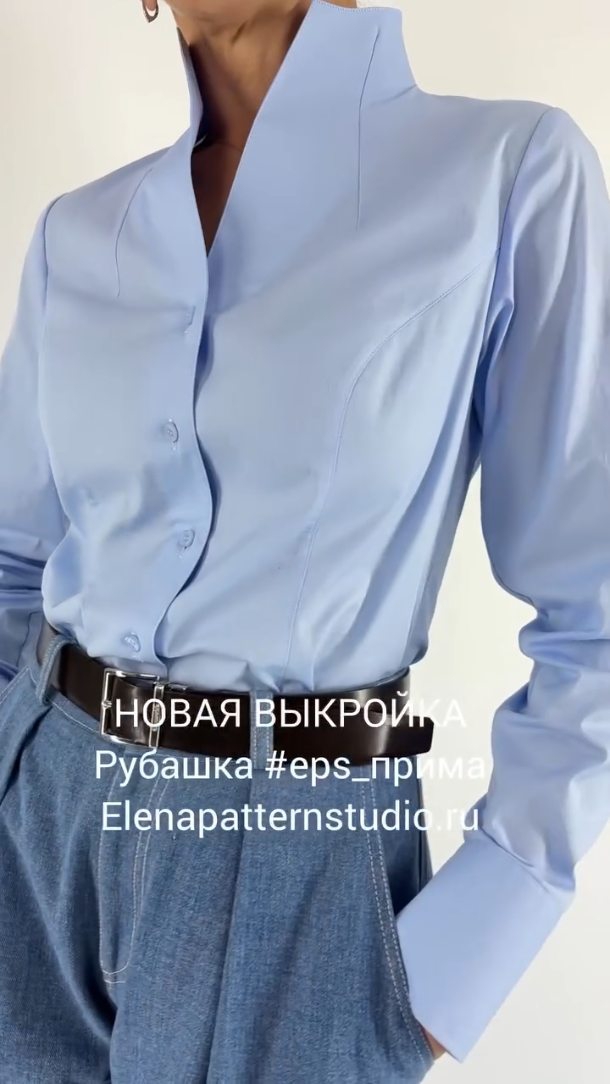 elena.patternstudio Уже не мечта! Готовая выкройка базовой рубашки #eps_аура ждет вас на сайте: https://elenapatternstudio.ru/ О модели: - Приталенный силуэт небольшого объема. - Вытачки на полочках, кокетка на спинке, плечевые швы смещены вперед. - Стояче-отложной воротник, разрезы с планками на рукавах, стильные манжеты на пуговице. - Вубашка с люксовой обработкой, сшита без оверлока. Вас ждет уникальная технология: в Инструкции по пошиву я описала 2 метода - клеевой и бесклеевой. Какой выбираете? Свою рубашку я сшила бесклеевой 👌 Создайте свою идеальную рубашку!😍