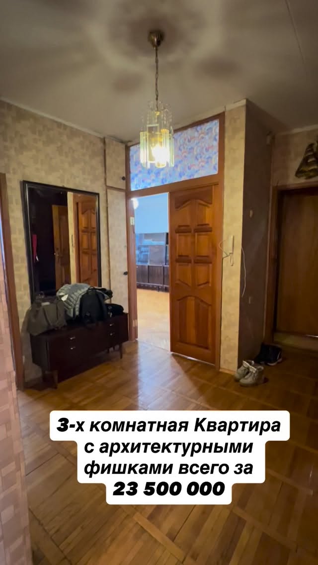 elina_inhouse Всего 23 500 000 Как вам такая цена ? Сейчас у меня в продаже очень атмосферная 3-х комнатная квартира в доме 1975 года. Москва, ул. Флотская 13к3 Квартира необычной и очень функциональной планировки - 2 стояка и ни одной несущей перегородки! Прекрасный вид из окон, балкон, вид на две стороны. А еще - деревянный паркет и витражи 🔥🔥❤️❤️