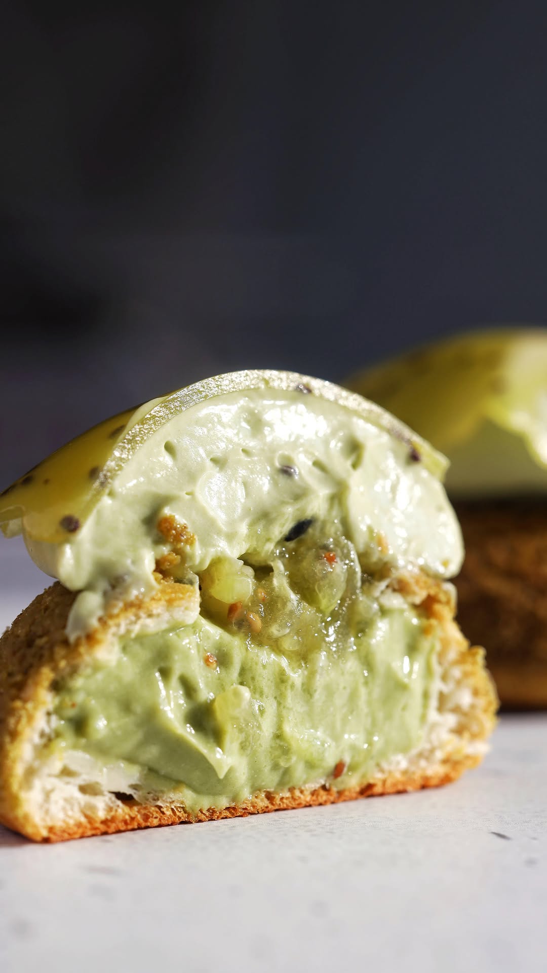 ex_pastry_cook ШУ: Матча -Киви из моей 2 книги Путеводитель Кондитера 📕 Обе мои книги можно найти на маркетплейсах 💕 ✅Заварное тесто: 60 грамм сливочного масла 75 грамм муки 62 грамма воды 62 грамма молока Соль 1/3 ч ложки , 1 ч ложка сахара 2-3 яйца С1 ( у меня ушло 3) Молоко , масло , сахар , соль и воду кипятим . Всыпаем просеянную муку и завариваем тесто до корочки на дне кастрюли. Даём охладиться 5-7 минут и постепенно вводим яйца (их заранее объединяем вилкой). Тесто должно быть мягкое и стекать треугольником с лопатки . У меня ушло 3 яйца Даём тесту полежать 2 часа в холодильнике Так будет меньше разрывов и глютен успеет окрепнуть в тесте. Отсаживаем на тефлоновый коврик и выпекаем 40-50 минут при температуре 160-170 градусов. Если опали после выпечки- Вы недопекли. Как только достали из духовки - охлаждаем на решетке , чтобы дно не отсырело ✅Кракелин: 50 грамм мягкого сливочного масла 50 грамм сахара 50 грамм муки 4 грамма чая матча Все смешиваем , раскатываем между двумя листами бумаги толщиной 2-3 мм, убираем в морозилку. После нарезаем с помощью круглой вырубки и выкладываем на Шу. Размер кракелина всегда больше самих Шу на 5 мм. ✅Заварной крем с чаем матча : 150 грамм молока 2,5% 150 грамм кокосового молока 80 грамм сахара 55 грамм яиц 30 грамм кукурузного крахмала 5 грамма желатина 90 грамм сливочного масла 5-8 грамм чая Матча , церемониальный (интенсивность регулируем по вкусу) сок и цедра 1 лайма чай смешиваем кисточкой с 30 граммами молока. Добавляем к общей массе “ вида молока молока смешиваем с сахаром, яйцом, крахмалом, матчей, соком лайма и цедрой. Увариваем до загустения, разводим в горячей массе желатин. Пробиваем блендером в узком стакане со сливочным холодным маслом до гладкой эмульсии.Охлаждаем в холодильнике под пленкой от 3 часов. Перед применением размешиваем миксером на средней скорости, восстанавливая структру, так как в холодильнике сильно застывает. Продолжение будет в комментариях 🫶👇🏻 Буду невероятно рада Вашим комментариям и репостам рецепта ❤️ а также впечатлениями от книги , чтобы не знакомые со мной кондитеры не переживали и готовили по книге , начиная или продолжая свой сладкий путь ✨