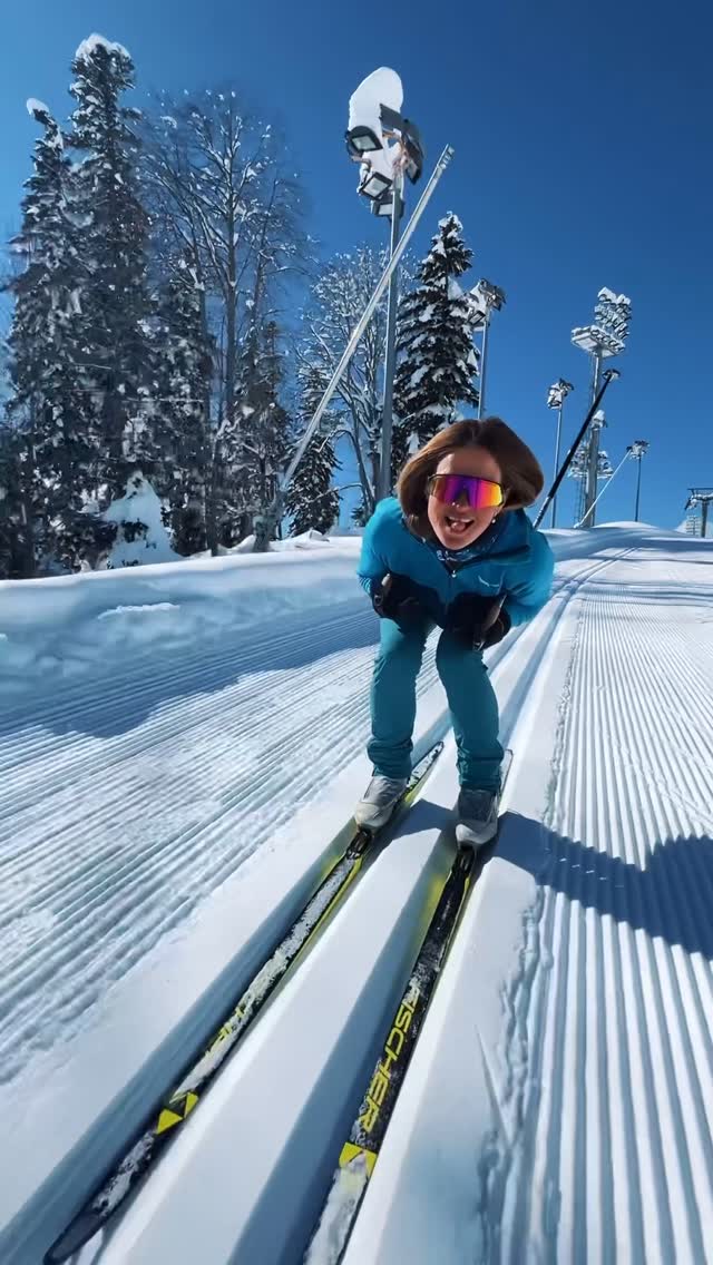 Съёмку вёл @skate_and_classic, случайно встретились на трассе. Сашка со своей семьей на спортивные сборы приехали, я впервые за семь лет лыжи расчехлила. Теперь «её не остановить!» 😁