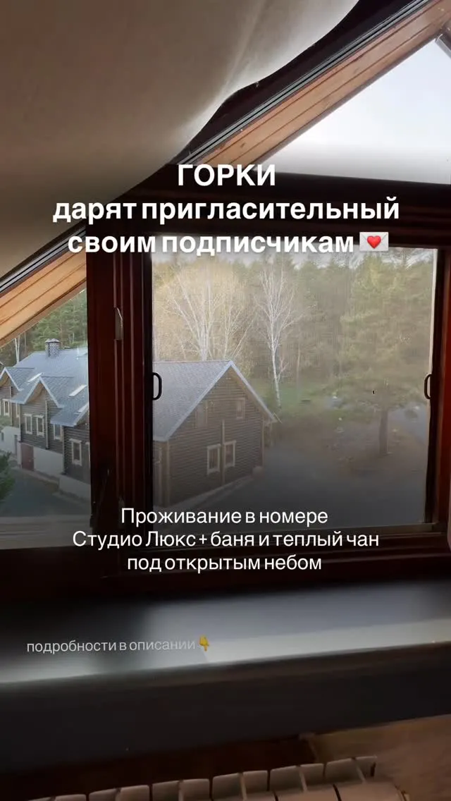 gorkihotel Отель «Горки» дарит пригласительный своим подписчикам!💌 Мечтаете о незабываемом отдыхе? Участвуйте в розыгрыше пригласительного и станьте гостем обновленного номера Студио- Люкс! Что входит в пригласительный: ▪️Проживание сутки в обновленном номере Студио-Люкс, рассчитанном на двух человек и одно дополнительное место . ▪️Посещение банного комплекса с чана под открытым небом на два часа. Как участвовать: •Подписаться на наш аккаунт. •Отметить в комментариях человека, с которым хотелось бы проживать. •Сделать репост этого рилса у себя в сторис. Уже в эту пятницу 17.10 мы объявим победителя! Удачи!🚀
