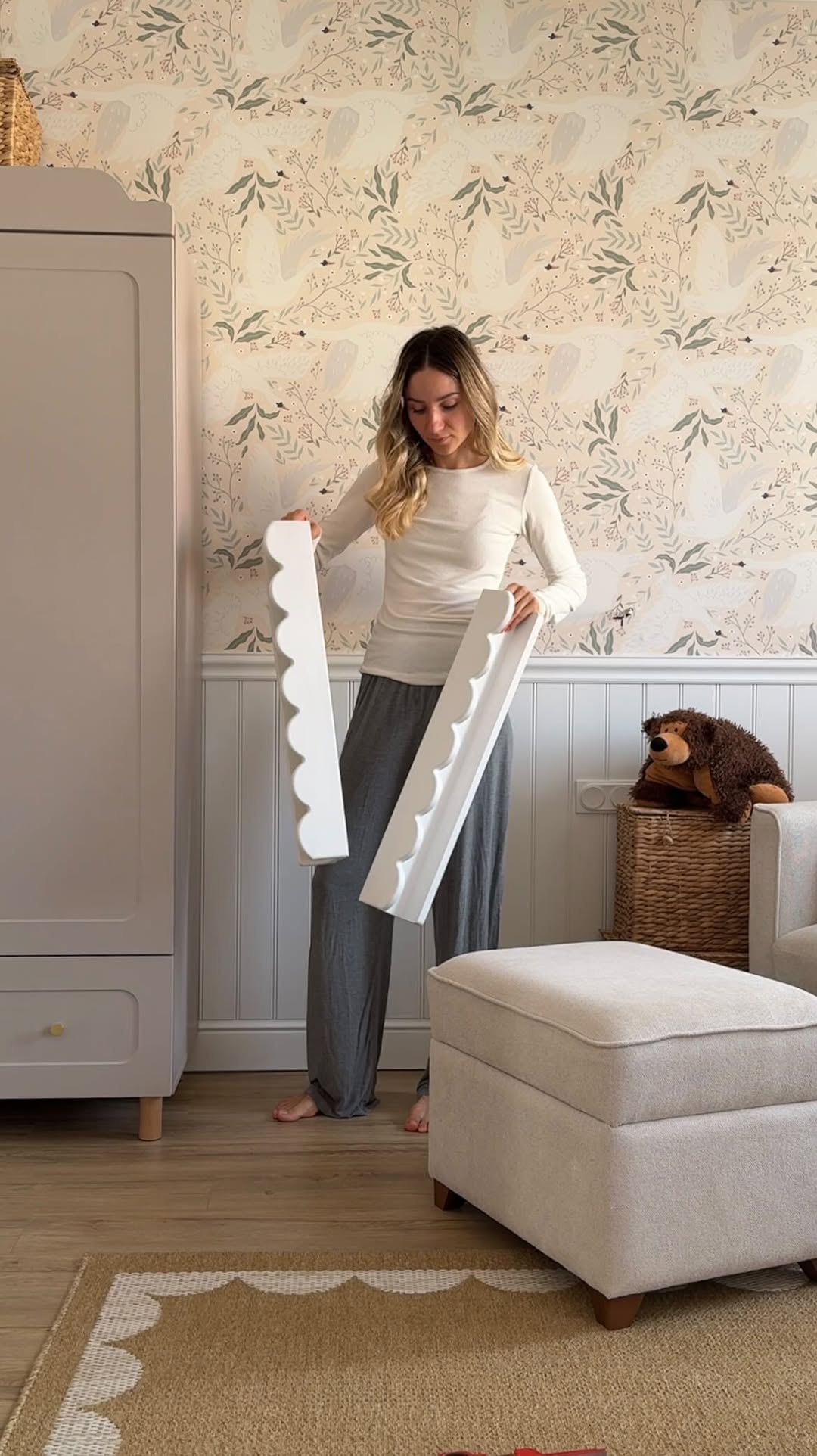greencityhouse ещё одна деталь для детской, заменила корзины в стеллаже 🧺 мне эти полукруги напоминают лепестки цветка, очень мило и нежно, к тому же таким образом зарифмовала такой же узор на ковре и полках для книг, делюсь артикулом: 🔗 на OZON 2301019322 #детскаякомната #интерьердетской