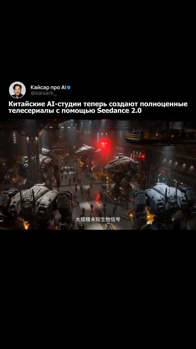 kaisark_ Это просто безумие. Сцены, которые раньше требовали сотни художников, VFX-пайплайнов, рендер-ферм и месяцев продакшена, теперь создаются небольшими командами с помощью промптов и референсных изображений. Некоторые результаты уже выглядят как адаптации аниме в формате live-action. Огромные мехи. Тяжёлый кинематографичный свет. Драматичное движение камеры. Такой уровень визуала обычно требует годы работы студии. И это всё ещё ранняя стадия экспериментов. Seedance 2 только вышел, а создатели уже продвигают его до полноценного эпизодического сторителлинга. Если такие инструменты продолжат развиваться, порог входа в создание сериалов может упасть с миллионов долларов до ноутбука и пары хороших промптов. А теперь представь, каким будет Seedance 4.0. 🤯 2026 - год ИИ. Хочешь быть впереди? Пиши «КАЙ» в комментариях и забирай бесплатный интенсив по нейросетям 🚀 #ии #нейросети #ai #aitools #нейросеть
