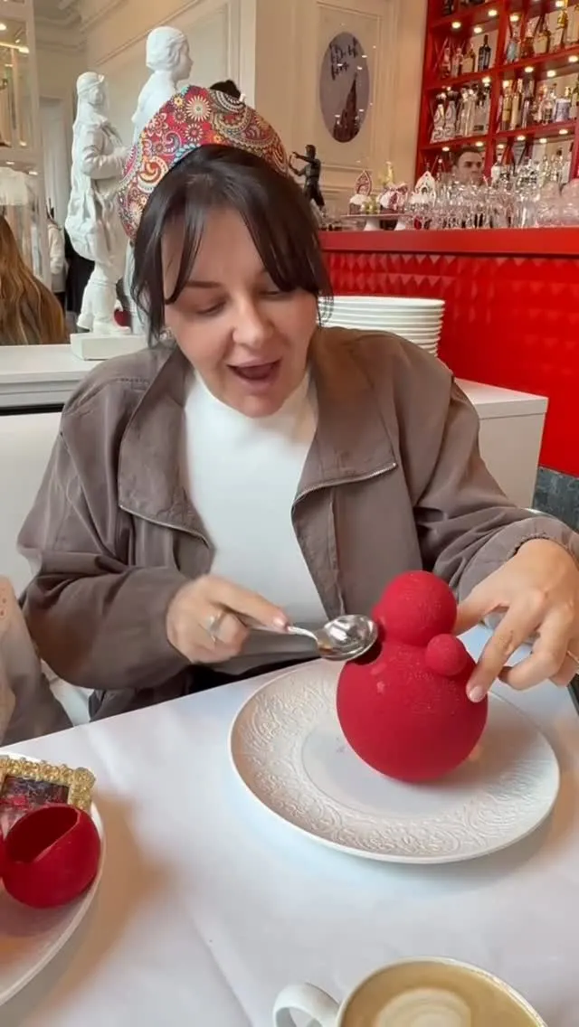 konstanta_____ Что же внутри самого дорого десерта?👀 Мы взяли три матрёшки из Dr. Живаго (хотя одной реально хватило бы всем 😅) — они просто гигантские. Но дело вообще не в том, чтобы их съесть. А в самом моменте. Разбиваешь эту матрёшку — а внутри нежнейший чизкейк, прям тает 🤍 И сверху плитка белого шоколада с Кремлём 😍 Дети, конечно, в восторге. Но если честно… они были просто отличным прикрытием, чтобы порадоваться самой 😄