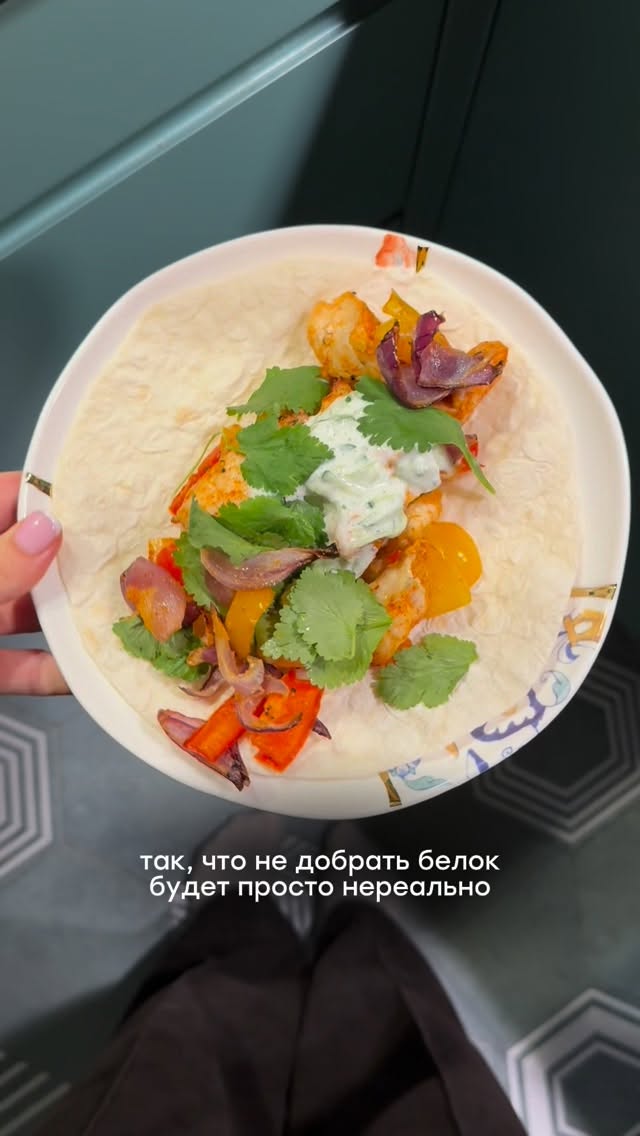 larinolya 40 г белка в вашем ужине ❤️🔥 Фахитос за 15 минут 😍 Болгарский перец 1-2 штуки разноцветные лучше взять Куриное филе Красный сладкий лук Чеснок порезать мелко Кинза Тортилья или лаваш с хорошим составом Для соуса я взяла йогурт, огурец, зелень, лайм 🍋🟩 порезать лук, перец и куриную грудку крупно, сложить в чашу аэрогриля, засыпать специи: копченая паприка, сушеный чеснок, соль, перец, перец Чили по желанию 🍋🟩отправить запекаться в аэрогриль на 15 минут по. 180 градусах, можно 1 раз помешать) 🍋🟩выложить на тортилью, добавить кинзу и соус, можно ещё авокадо добавить! Сбалансированный ужин готов! 😍 #зожрецепты #ппужин #ппрецептыблюд #здоровоепитаниеэтовкусно #аэрогриль