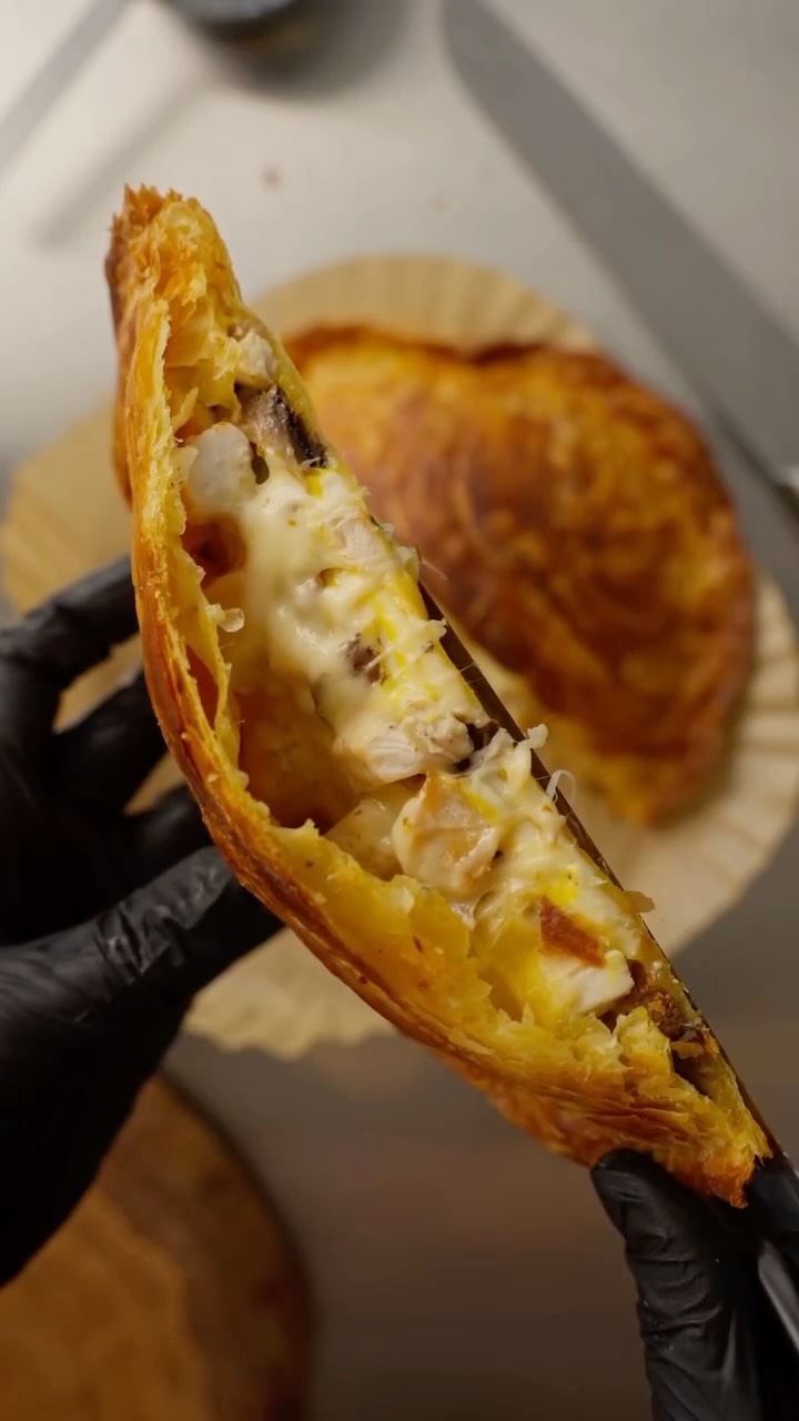 mama_sanchelo ХРУСТЯЩИЙ ПИРОГ с жульен начинкой 🔥 ◽️лепешка роти - 2 шт. ◽️сыр твердый - 150 г ◽️грибы - 100 г (готовила в аэрогриле со специями) ◽️курица - 100 г (мелко нарезала и быстро обжарила на небольшом количестве масла) ◽️кунжутный соус - 20 г ◽️сыр плавленный в квадратиках - 4 шт. Готовим в аэрогриле 10-12 минут 180 🔥, в духовке чуть дольше 15-20 минут.