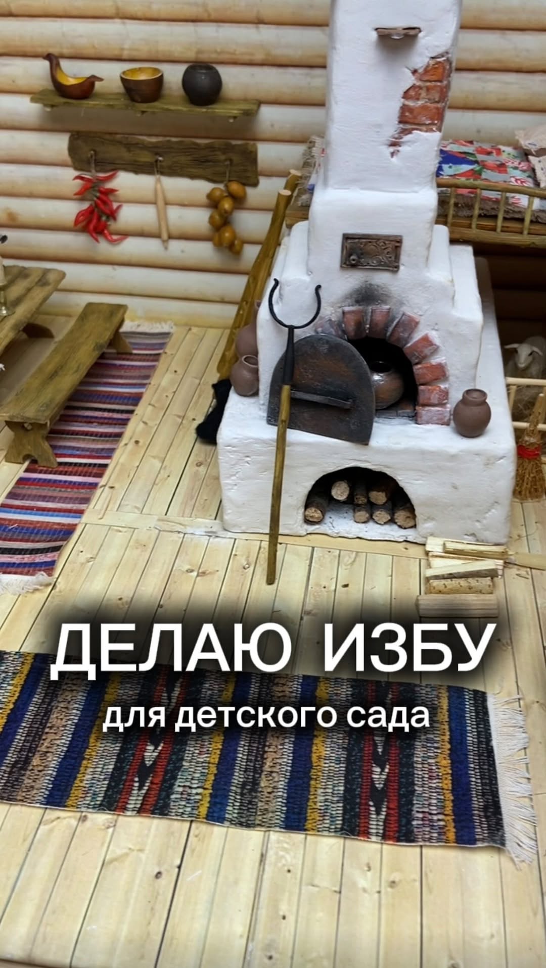 manufruktura А вы заметили тут овечку? 🫢…Эта изба до сих пор стоит в садике. Уже 4 года. Удивительно, но все целое. Видимо, благодаря стеклянному кубу, который поставили воспитатели от пыли и детских пальчиков. Куб снимается только для специальных занятий и тогда детям можно все потрогать) #полимернаяглина, #миниатбра #изба Русская печка в миниатюре, русская изба в миниатюре, румбокс русская изба #масленица