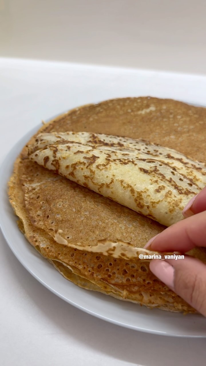 marina_vaniyan Самые вкусные и ажурные блины 🥞 Молоко 1 л Ванилин 2 г Соль щепотка Яйца 2 шт Сахар 3 ст/л Мука 350 г Кипяток 1 стакан (200 мл) Масло растительное 4 ст/л #блинчики #блины #блинынамолоке #блинысмясом #блиныстворогом #блинырецепт
