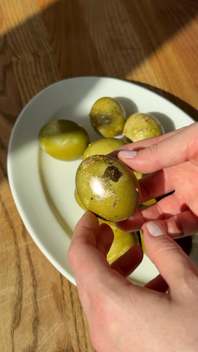 masha.stories В этом году захотелось так ✨ Куркума 1 ст ложка Чай каркаде 5 пакетиков 1. В холодную воду выкладываем чистые белые яйца, добавляем немного соли, пакетики чая каркаде и куркуму. Отвариваем 10 минут до готовности. Даем остыть в растворе 2.Часть яиц протираем и натираем бумажным полотенцем с маслом. 3.Вторую часть можно укосить поталью. Для этого смазываем ладонь белком, берем лист патали и протираем яйцо