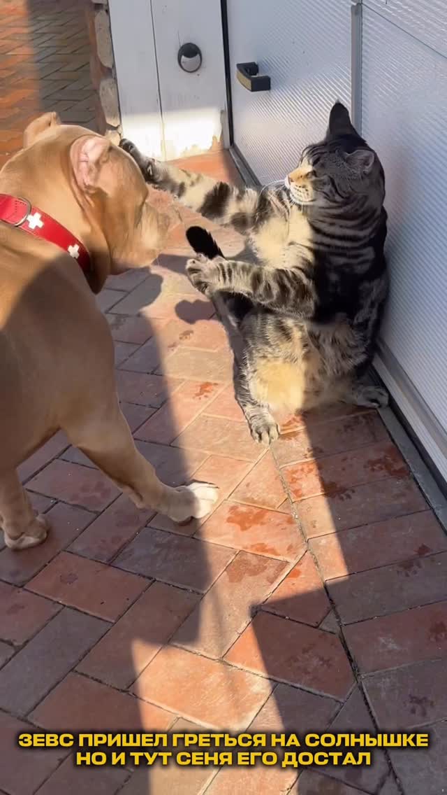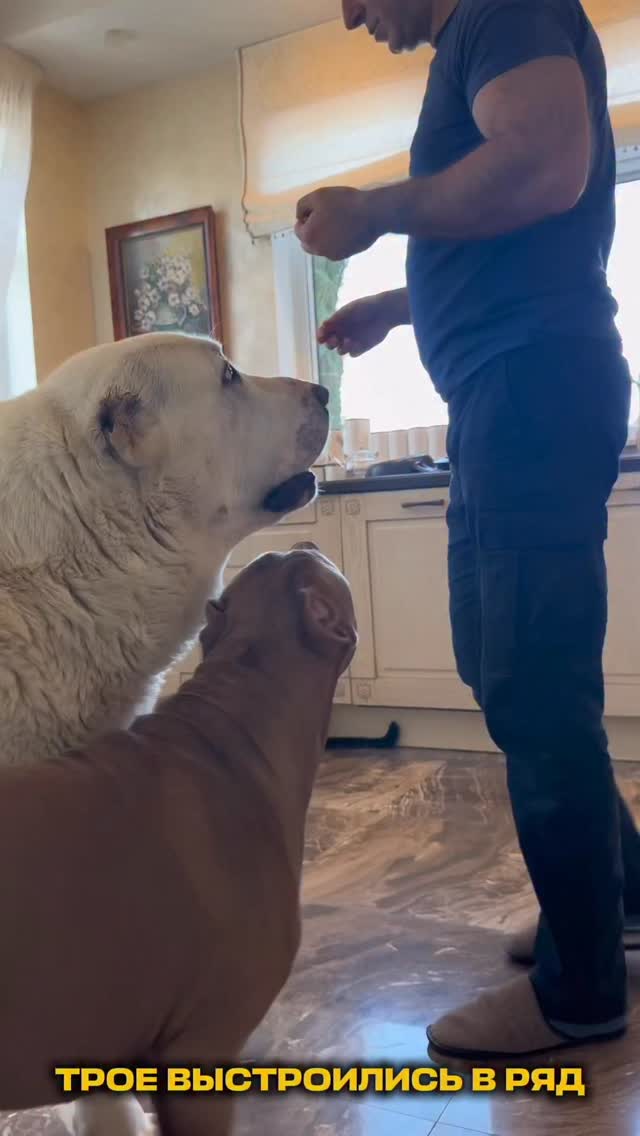 mironov_sergey_restorator Три послушных гиганта. Алабай (90кг), щенок булли (40кг) и кот чаузи (10кг). Говорят, что они не должны поддаваться дрессировке.😁