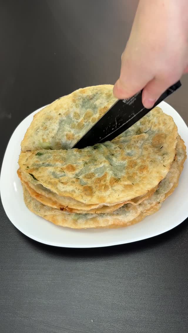 musoeva.r Лепёшки с зеленью 🫰 Ингредиенты: Тесто Мука 500 Гр Вода сколько возьмёт Соль 1 ч,л Замешиваем мягкое тесто. Начинка: Укроп, Петрушка, зелёный лук 2 шт Лук 🧅 нарезаем мелко и жарим до золотистого цвета Соль, специи по вкусу Я добавила универсальную приправу, зира, и кориандр. Способ приготовления как на видео