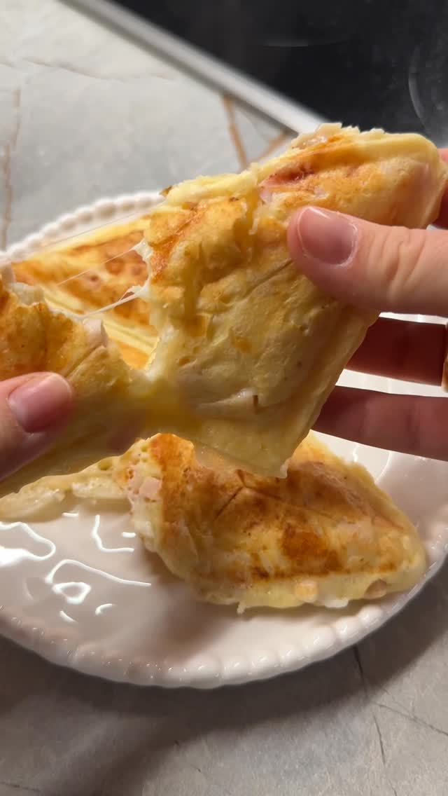 pe4urkina Белковые вафли за 5 минут 🧇 Для теста : -3 яйца -5 ст л сметаны 10% или греч йогурта -4-5 ст л муки -щепотка соли Для начинки : -3 яйца -зеленый лук -50 гр сыра сулугуни Все смешиваем и выпекаем в вафельнице