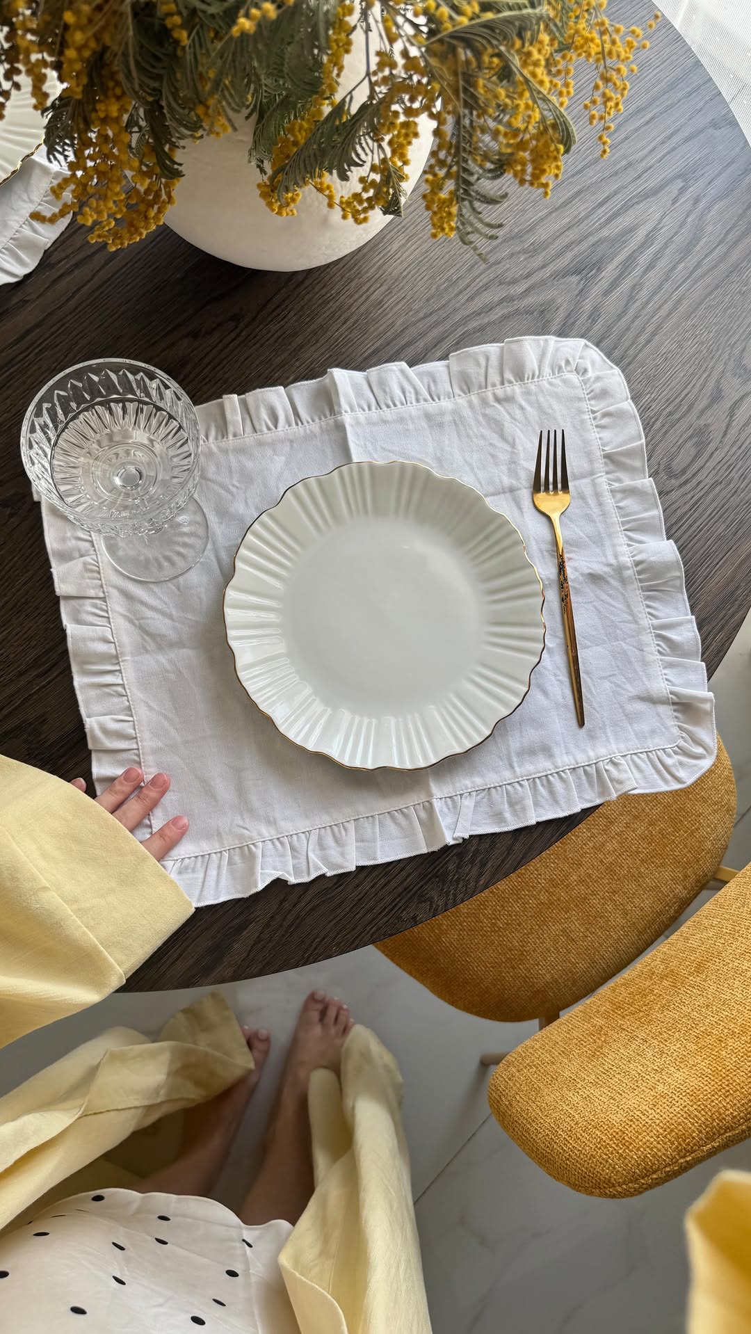 polyaloginova ну ничего не могу поделать с собой и со своим желанием добавить красок в каждый уголок дома💛 стол @lagomhome.ru стулья вб #360811975 ваза @makeitmagic салфетки вб #29945413