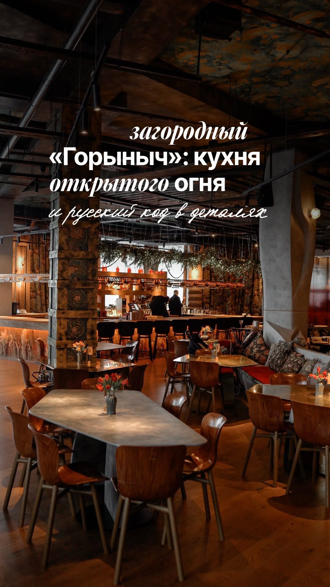 restinmsk Добро пожаловать в новый «Горыныч» @gorynich.novayariga — кухню открытого огня от Бориса Зарькова @эboris_zarkov и Владимира Мухина @muhinvladimir. Дровяная печь, камин в центре зала, гигантская пицца-печь, русский код в деталях и иллюстрации Билибина — знакомые каждому с детства. Но главное здесь — не сказки, а вкус, который рождается в пламени. Комплементом — горячий, ароматный хлеб на монастырской закваске. Затем хиты, которые сделали проект культовым. Суши из мраморной говядины с фуа-гра, идеальный борщ с пастрами и копчёной грушей, неаполитанская пицца и сметанник с хурмой, за которым можно возвращаться бесконечно. Ресторан открыли на Новой Риге, в масштабном фудхолле Bazar, всего в 7 минутах от МКАД. Получился удобный формат загородного отдыха выходного дня. Красногорск, М-9 Балтия, 26-й километр, 7А, Новая Рига