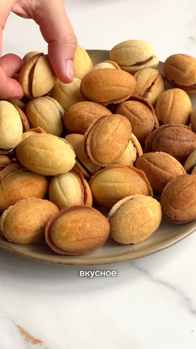 savkina_ek ОРЕШКИ СО СГУЩЕНКОЙ 🌰 Сохраняй рецепт на 50шт 🔅100г Сливочное масло 82,5% мягкое комнатной температуры 🔅50г Сахар 🔅10г Ванильный Сахар 🔅1 шт Яйцо (50-55г) 🔅230г Мука пшеничная 🔅5г Разрыхлитель Начинка 🔅Вареная сгущенка - 400г Если вареная сгущенка очень густая, то можно разбавить обычной белой сгущенкой до нужной консистенции 1. Соединяем мягкое сливочное масло, сахар и ванильный сахар. Взбиваем 1-2 минуты до бела и пышности. 2. Затем добавляем яйцо, взбиваем до однородности. 3. Добавляем сухие ингредиенты, замешиваем руками до состояния мягкого комочка теста. 4. Делим тесто на маленькие кусочки по 3,5 г. Выпекаем в разогретой орешнице 2 минуты до золотистого цвета. 5.С помощью ножа или зубочистки извлекаем орешки из формы, при необходимости подравниваем края. 6.Для начинки используем варёную сгущёнку, отсаживаем через Кондитерский мешок. Дальше склеиваем половинки друг с другом и готово Хранение: В герметичном контейнере при комнатной температуре до 3-4 дней, в холодильнике до 7 дней ОСОБЕННОСТИ: ❗️Если у тебя орешница больше или меньше по размеру то 3,5г меняются на другой вес, нужно подстроиться под себя. От 3 до 5г ❗️Время выпечки может меняться, тоже зависит от орешницы, найди свою ЗОЛОТУЮ середину. От 1,5 до 3 минут ❗️Не начиняй горячее печенье, сгущенка растает и потечет 🔥Пиши слово БАНАНА и я отправлю тебе бесплатный урок по торту «банан карамель» и еще 20 бесплатных рецептов #орешки #орешкисосгущёнкой #рецепторешков #орешкисосгущенкойрецепт #длякондитера #рецептдесерта #песочноепеченье #печеньепесочное #печеньерецепт #печеньесосгущенкой #быстрыйдесерт