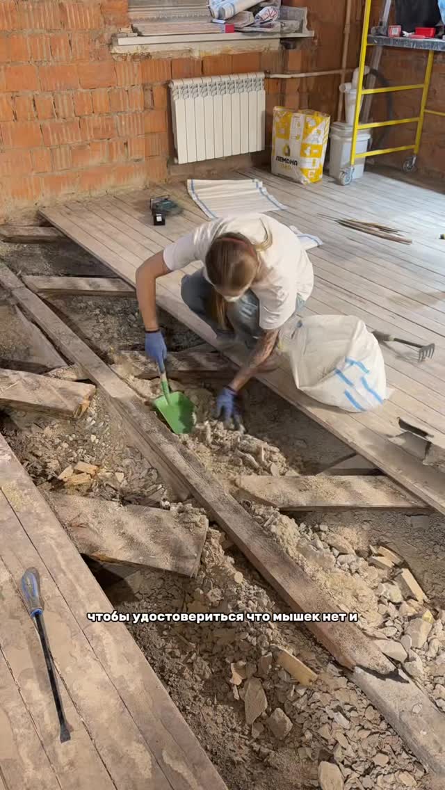 stalinka_na_mojaike Ремонт в своей 2 декабря - 24 декабря 2025 Я не знаю к чему меня говорит эта квартира - но сложилось уже впечатление что я готова 😂 Живность(или следы живности) это последнее что я ожидала увидеть в полах. И сразу скажу: по итогу я не встретила никого, хотя каждый раз заглядывала под доски на всякий случай. В один из дней ко мне заглянула соседка, она выросла в этом доме, сейчас сдает комнату выше этажом. Хотела посмотреть какие у нас в доме стены и полы, задумывается делать ремонт. Рассказала что у нее был хомяк, который сбегал и сосед снизу(мой сосед сбоку) его всегда им возвращал. Как он спускался на этаж ниже никто не знает. И когда я все таки нашла место незаконного проникновения(угол возле входной двери, там была дырка и оттуда я всегда слышу как лает собака соседа) в мои полы, я задумалась: может это был хомяк? Видимо мы никогда не узнаем точно. Но по итогу работ: все перекрытия в хорошем состоянии, весь мусор ненужный ушел. Я смогу сделать дополнительную шумоизоляцию полов теперь. Я не знаю какой будет итог с новыми черновыми полами. Но точно знаю теперь, что я бы пожалела по итогу если бы оставила старые доски. А пожалела бы я после окончания ремонта. Из хороших новостей: я наконец-то попала в квартиру ниже этажом и зафиксировала на камеру состояние их потолков. Из важной информации: 📍шлак в полах при деревянных перекрытиях лучше не трогать, он служит классной шумоизоляцей. Если же его убирать, на его место нужно завозить кварцевый песок, а это +300к за сам только песок. Так же вывоз шлака не самое дешевое удовольствие, поверьте мне. У меня ушло 11 контейнеров уже, и это еще шлак остался в корытах. 📍на деревянные перекрытия нельзя делать бетонную стяжку, это может закончиться очень плачевно. Могут обрушится перекрытия. Поэтому только новый пол на деревянных лагах.