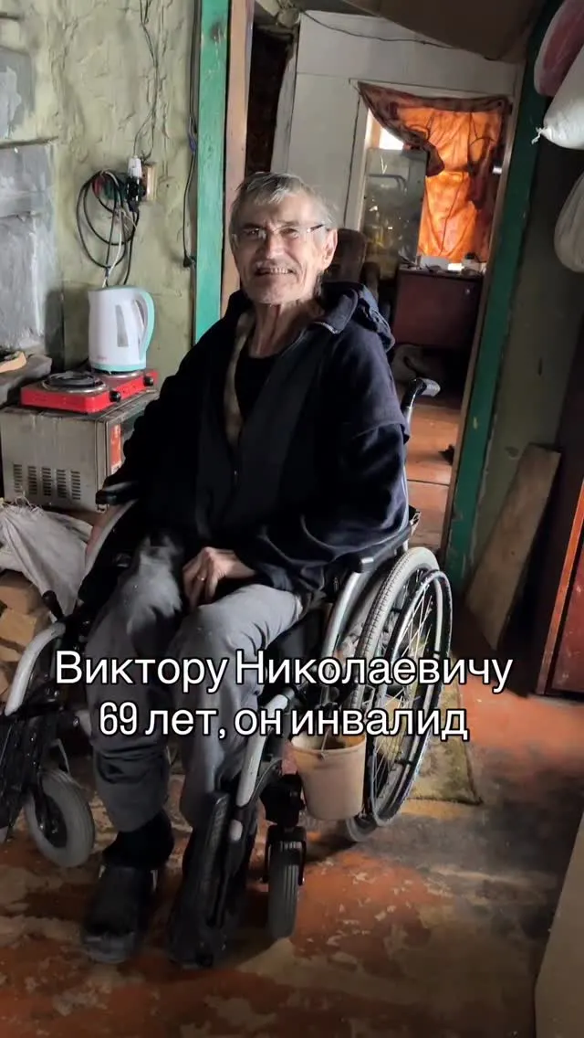Виктору Николаевичу 69 лет. Так сложилась жизнь, что сегодня он живёт один — на инвалидности, в очень старом домике в далёкой деревне. Условия там тяжёлые: в доме нет ни воды, ни туалета, электрика в крайне плачевном состоянии. Но, несмотря на всё это, Виктор Николаевич не жалуется на жизнь. Он часто улыбается, искренне радуется мелочам и старается держаться с удивительным достоинством.