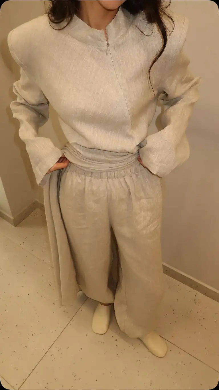 the_comeks NEW! Просили показать в светлом оттенке ✅ Двойка: алладинки с топ с разрезом, 100% лен.