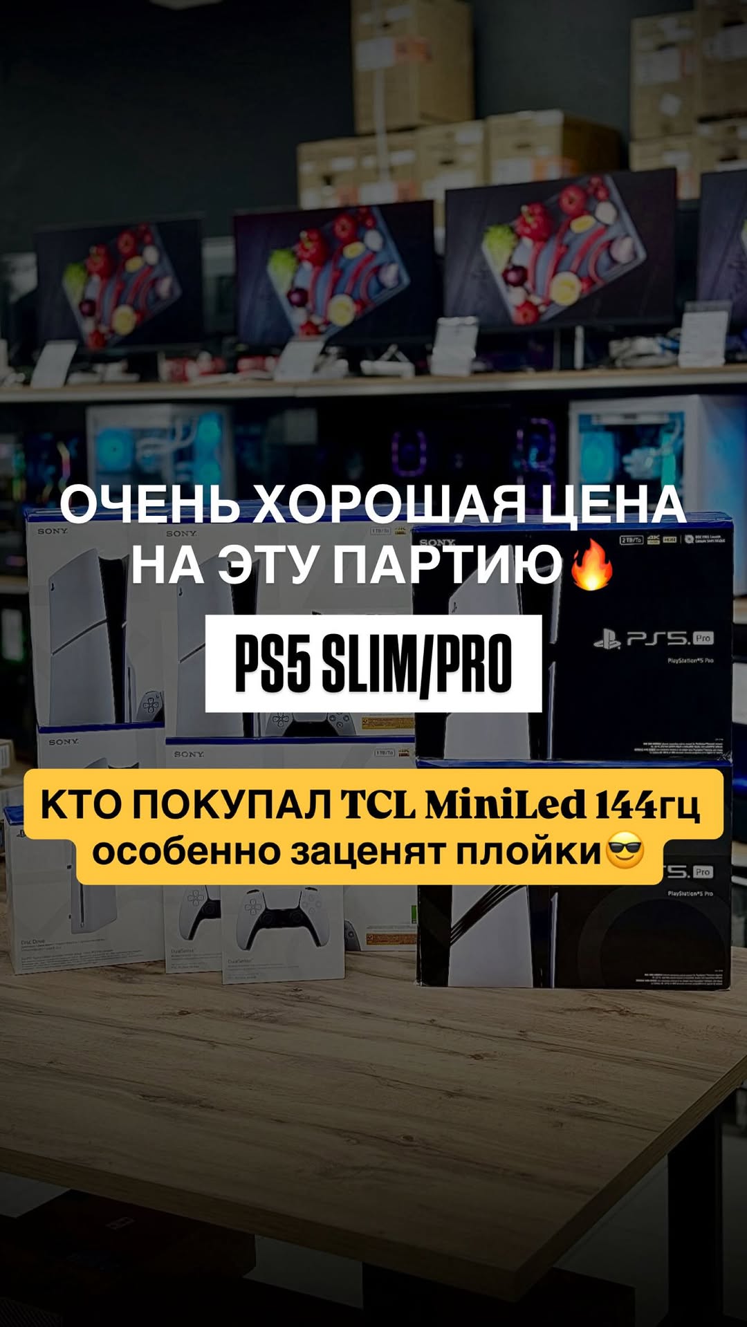 tochkacomp Количество ограничено, всего 5шт Slim, 3шт PRO. PS5 Slim 1tb 48900₽ PS5 Pro 2tb 69900₽ Дисковод на PRO 10900₽ Геймпады 6600₽ Новые, гарантия 6 мес ❗️ Все кто успели приобрести TCL MiniLed 144гц особенно заценят плойки 😎
