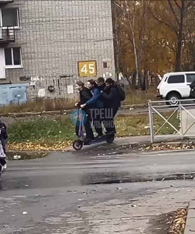 tresh_ulyanovsk 🤦♂️ Четыре амбала, один самокат и ноль инстинкта самосохранения В 19 микрорайоне замечены супергении, решившие прокатиться вчетвером на самокате
