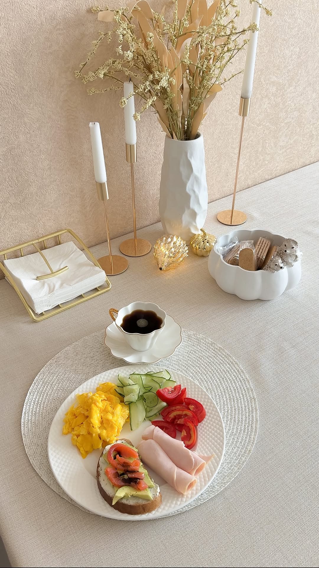 turchina_home Завтрак🤌 Самый любимый прием пищи) На видео был скрембл, огурец, помидор, филе индейки и брускетта с творожным сыром, рыбкой и бальзамическим соусом! И последнее время очень полюбила по утрам чистый кофе без молока)