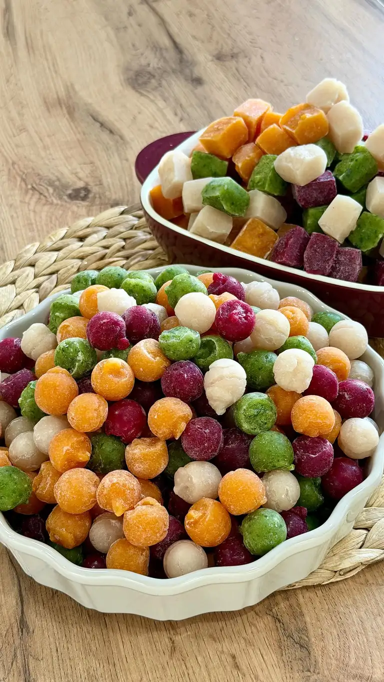 veronika_mamedova_ ЦВЕТНЫЕ ФРИКАДЕЛЬКИ 🌈 Ингредиенты (на 500 г куриного филе): • Лук - 100 г • Вода - 100 мл • Соль, перец - по вкусу Добавки для цвета: • 🟣 Свёкла - 150 г • 🟠 Морковь - 150 г • 🟢 Шпинат - 100 г • ⚪ Классические - без добавок Приготовление: 1️⃣ Все ингредиенты пробить в блендере до кремовой текстуры. 2️⃣ Добавить воду, посолить, поперчить и снова перемешать. ⚠️ Через мясорубку не готовим - масса слишком мягкая. 3️⃣ Переложить фарш в кондитерский мешок и отсадить маленькие фрикадельки на доску или в формы для льда (предварительно застелив плёнкой). 4️⃣ Заморозить, затем пересыпать в пакет - удобно для супов и быстрых ужинов 😊
