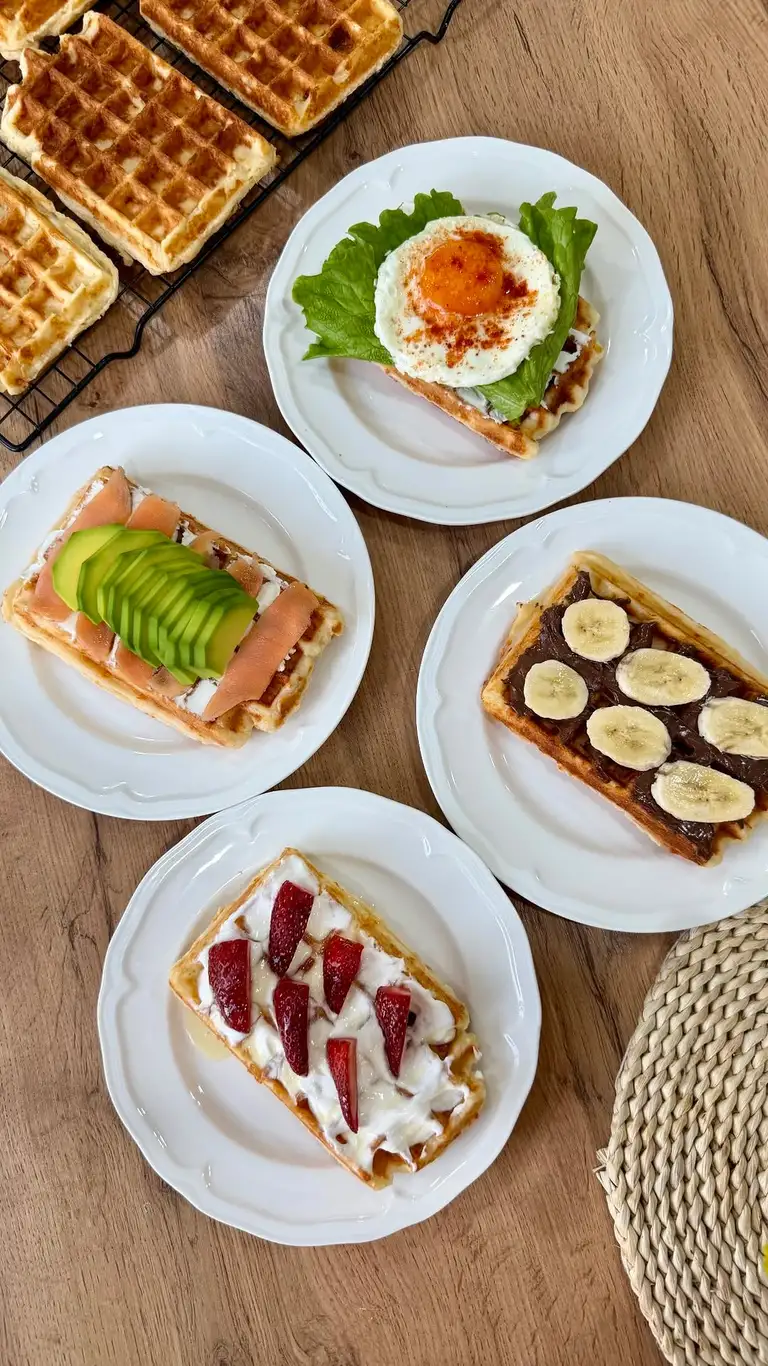 veronika_mamedova_ Сырные вафли 🧇 ❗️Я готовила в 5 раз больше, чем указано в базовом рецепте Ингредиенты (базовый рецепт) • Творог (не более 9% жирности) - 200 г • Яйца куриные (1 категория) - 2 шт • Сметана - 1 ст. л. с горкой • Сыр - 50 г • Рисовая мука - 4 ст. л. (если используете пшеничную, может понадобиться чуть больше) • Разрыхлитель - 1 ч. л. • Соль - по вкусу (не переборщите, так как сыр может быть достаточно солёным) Процесс приготовления 1. В глубокую миску выложите творог. 2. Добавьте яйца и сметану. 3. Натрите сыр на тёрке и добавьте к творожной массе. 4. Всыпьте рисовую муку, разрыхлитель и немного соли. 5. Хорошо перемешайте тесто до однородности. Тесто должно получиться достаточно плотным и липким - это нормально. 6. Разогрейте вафельницу. 7. Выложите небольшое количество теста и закройте крышку. 8. Выпекайте примерно 3–3,5 минуты. ❗️Очень важно не открывать вафельницу раньше времени, иначе вафли могут прилипнуть. Если вафельница менее мощная, может понадобиться чуть больше времени. Такие вафли отлично подходят для разных завтраков: • с греческим йогуртом, мёдом и ягодами • с творожным сыром, огурцом и сёмгой • с авокадо и яйцом